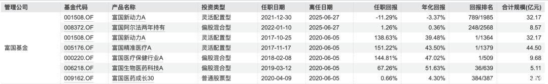 然而,于洋回归后的业绩却不及市场期待。Wind数据显示,截至6月27日卸任,于洋管理富国新动力的三年多时间里,累计亏损11.29%。他于2022年1月10日起管理的富国阿尔法两年持有,收益率也仅为1.26%,与其首次管理富国新动力期间138.63%的任期回报形成鲜明对比。